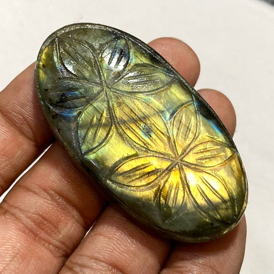 Carved Labradorite Gemstone - Handcrafted Oval & Heart Cabochon, Crystal Healing Gift for Her