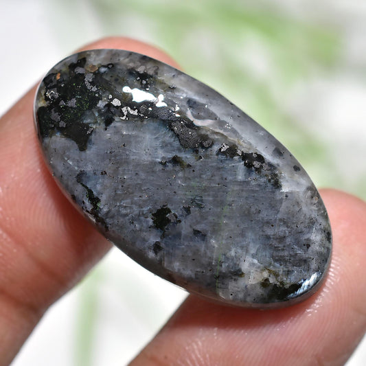 Natural Larvikite Gemstone – Large Iridescent Grey Cabochon for Pendants