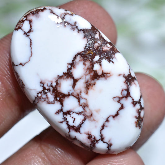 Wild Horse Stone Oval Cabochon - White & Brown Polished Magnesite for Wire-Wrap Pendants