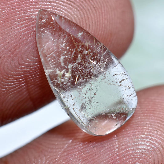 Golden Rutile Crystal Pear Gemstone - Smooth Flatback Cabochon for DIY Jewelry
