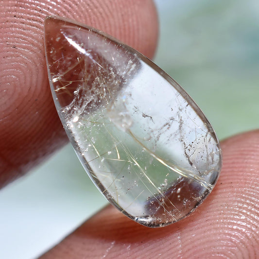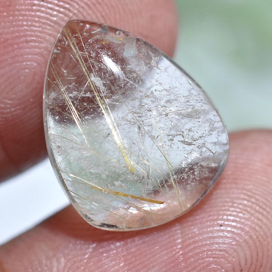 Crystal Golden Rutile Cabochon – Pear Shaped Loose Gemstone for Rings & DIY Jewelry