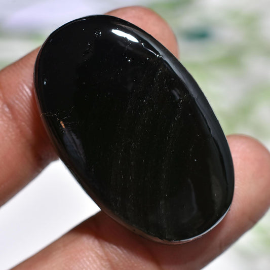 Natural Black Obsidian Cabochon - Oval Shaped Polished Gemstone
