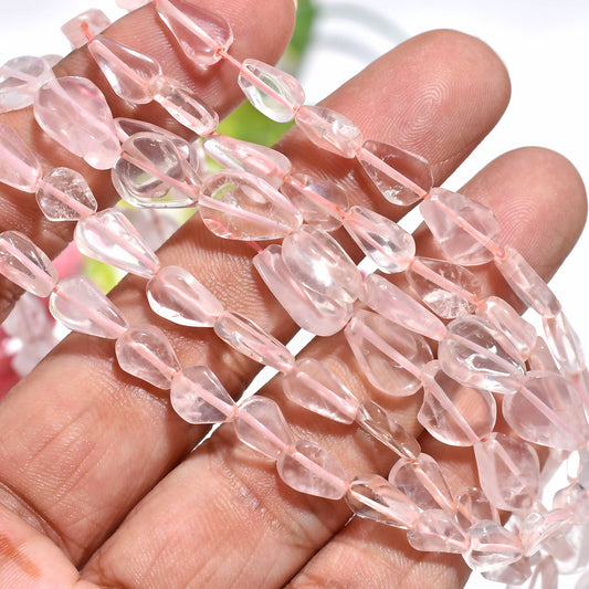 Natural Rose Quartz Beads – Polished Uneven Pear Shape Gemstone Strand