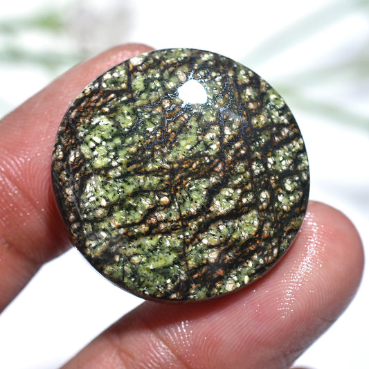 Natural Green Lizard Skin Jasper – Round Polished Cabochon (27x27x3mm,/39ct)
