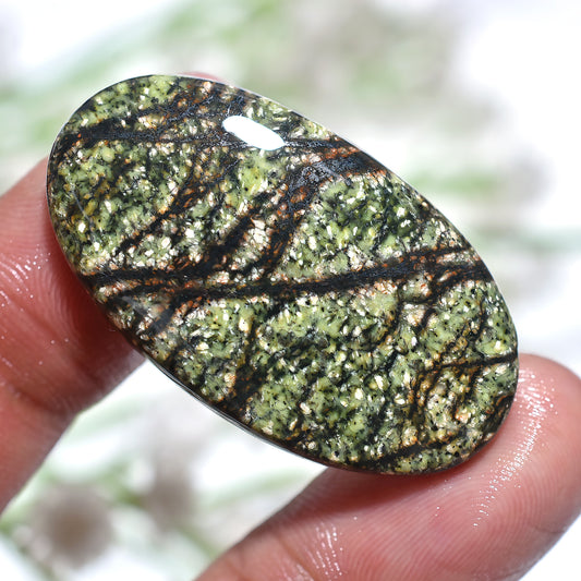 Oval Green Lizard Skin Jasper Cabochon – Smooth Polished Gemstone for Jewelry Making (20x37x3mm,/36ct)