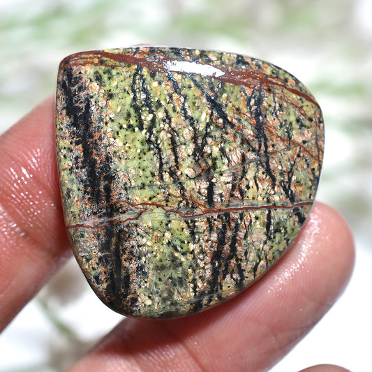 Fancy Shaped Green Lizard Skin Jasper – Polished Cabochon Gemstone (21x43x3mm,/40ct)