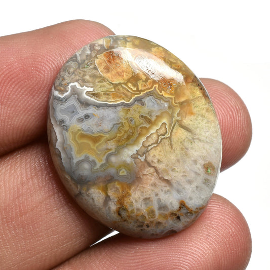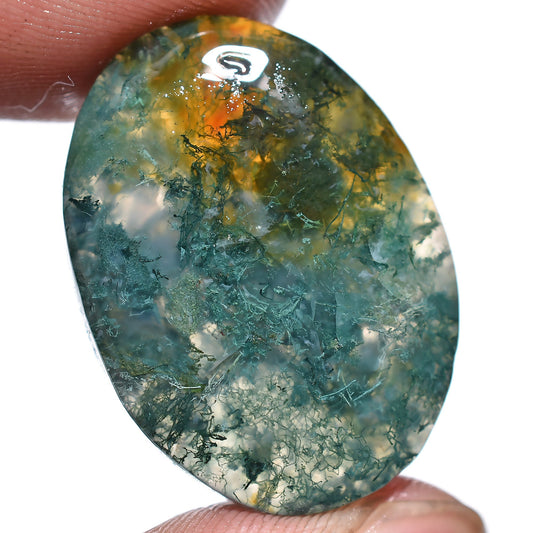 Unique Natural Pear Moss Agate Gemstone - AAA Quality Oval Cabochon for Jewelry