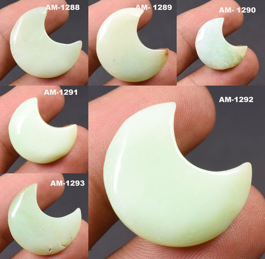 Natural Chrysoprase Crescent Moon - Gemstone Carving Charms for Jewelry Making