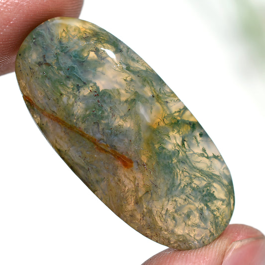 Landscape Moss Agate Oval Cabochon – Natural Gemstone for Jewelry Crafting( 7x37x3mm,/28ct)
