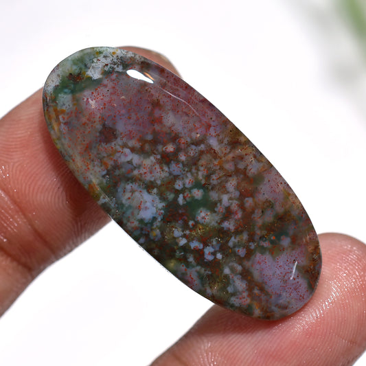 Elegant Moss Agate Oval Cabochon – Handcrafted Gemstone for Creative Jewelry (15x35x3mm,/22ct)