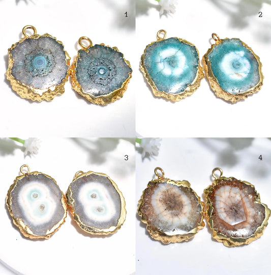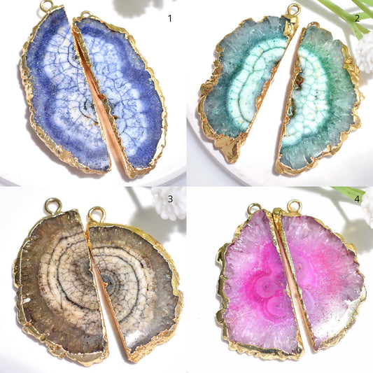 Solar Quartz Colorful Earrings | Agate Matching Set in Gold DIY Connector - Perfect Gemstone Pair Gift for Women
