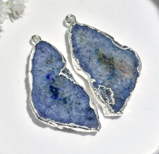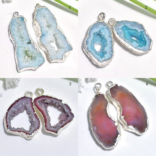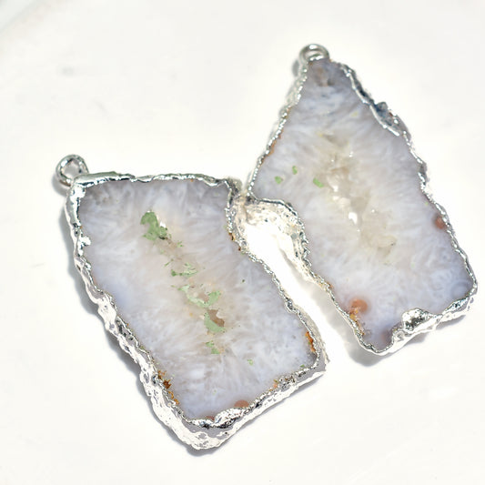 Window Druzy Pair in Silver Plated Electroplated - Geode Agate Earrings Pair