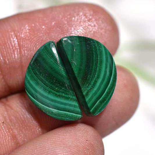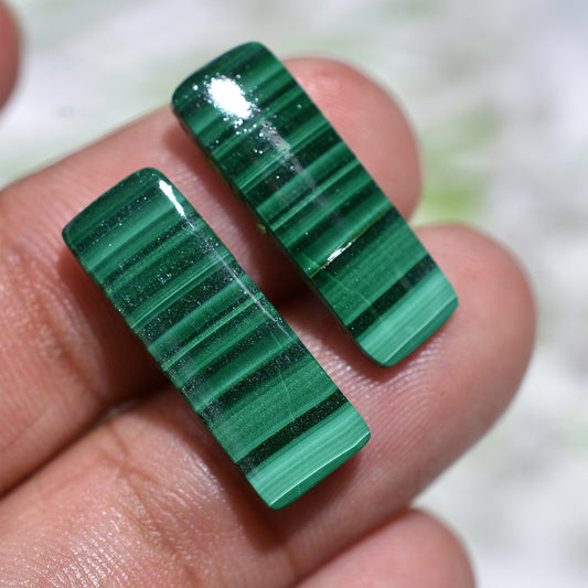 Rich Green Malachite Gemstone Pair – Natural Matched Stones (7x16x4mm,/19ct)