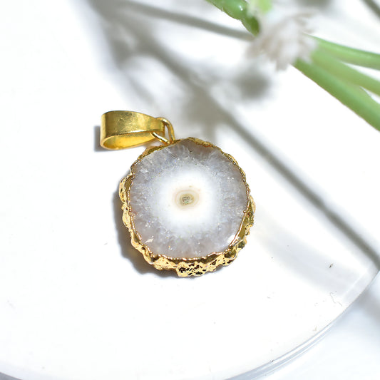 White Solar Quartz Gold Plated Pendant – Natural Crystal Shiny Gemstone Locket