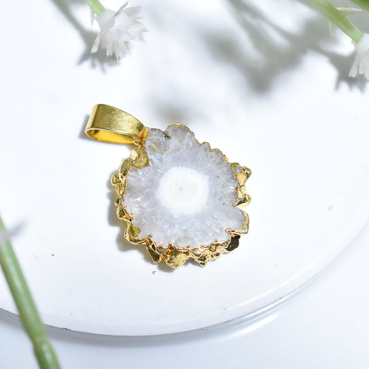 Elegant White Solar Quartz Pendant – Natural Crystal Sparkle Electroplated Gemstone