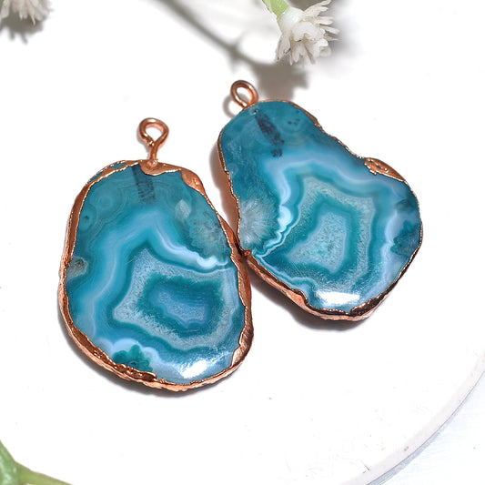 Solar Quartz Gemstone Pair - Silver Electroplated Earrings Pair - Fancy Shape Geode Agate