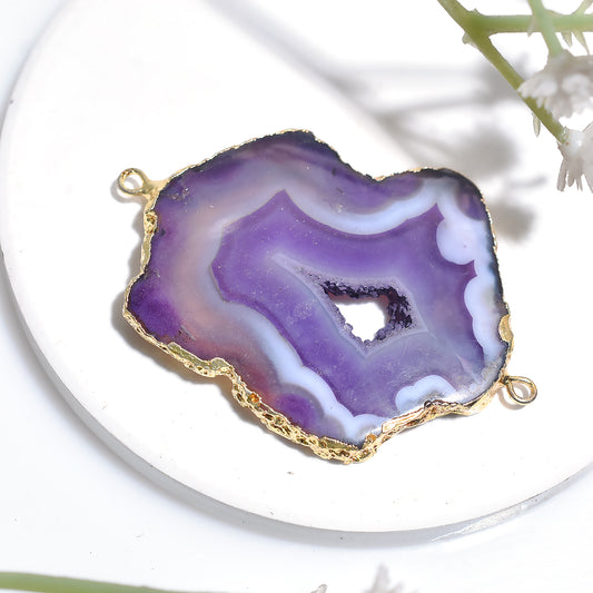 Violet Solar Quartz Connector, Wholesale Gold Electroplated Gemstone Double Bail Pendant