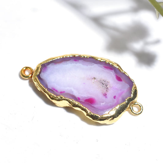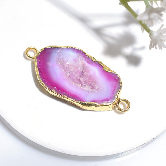 Pink Druzy Solar Quartz Connector – Golden Electroplated Gemstone for Jewelry
