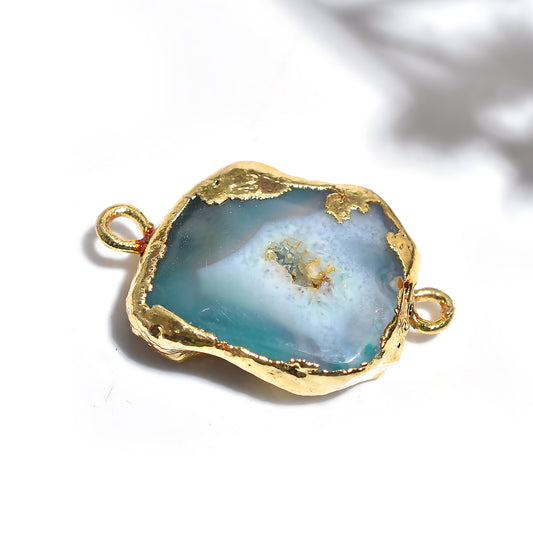 Natural Druzy Blue Solar Quartz Connector – Golden Electroplated Gemstone for Crafts
