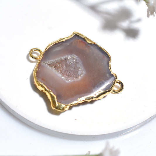Wholesale Brown Druzy Solar Quartz Connector – Golden Electroplated Gemstone for Jewelry