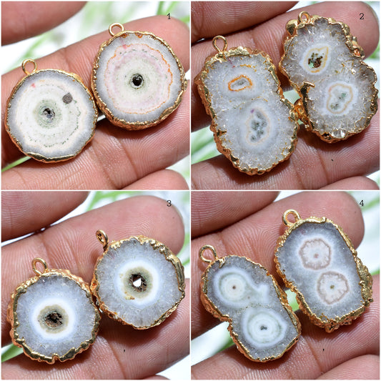 Wholesale Solar Quartz Gemstone Pair - Gold Electroplated