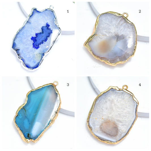Beautiful Blue Solar Quartz Slice Necklace – White Quartz Pendant with Gold Electroplating | Crystal Gemstone Charm Necklace