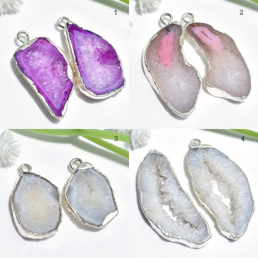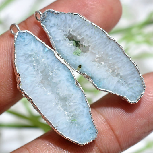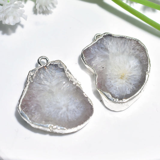 Unique Solar Quartz Earring Pair – Silver Electroplated Druzy Jewelry for All Occasions