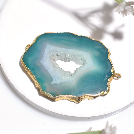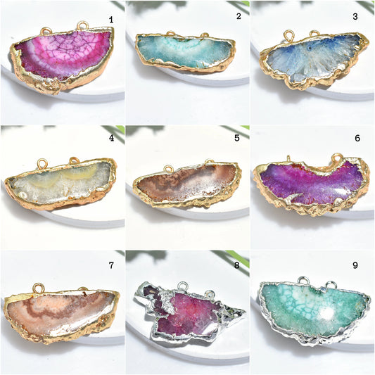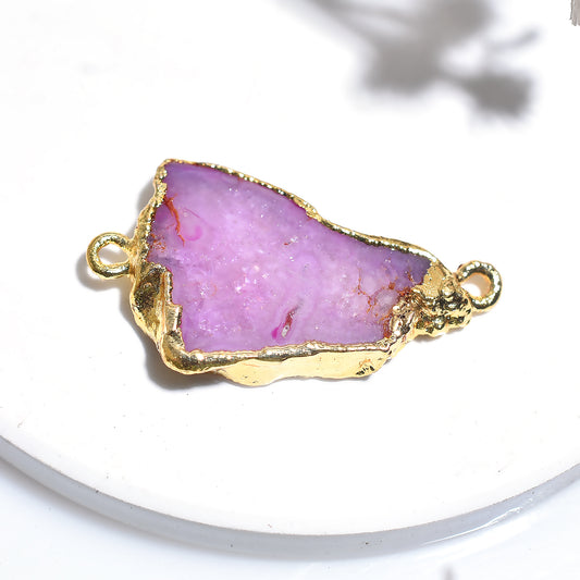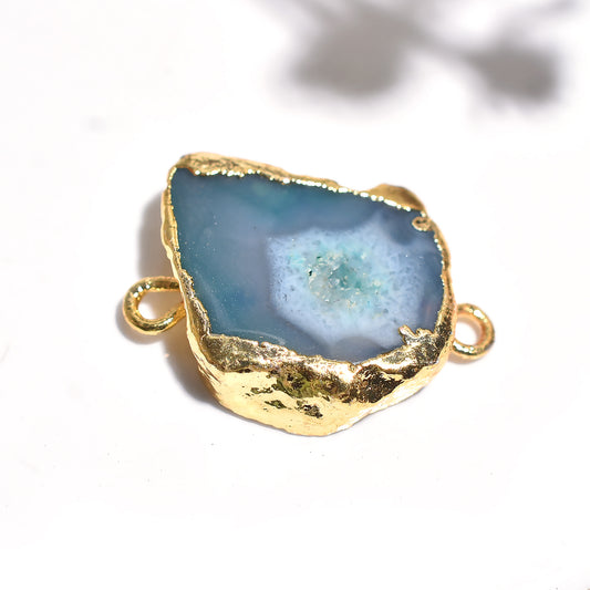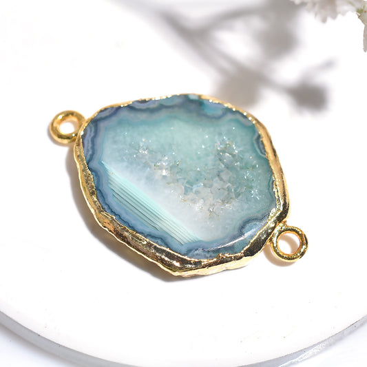 Natural Druzy Solar Connector Charm, Wholesale Gold Plated Double Bail Stone Connector For Jewelry