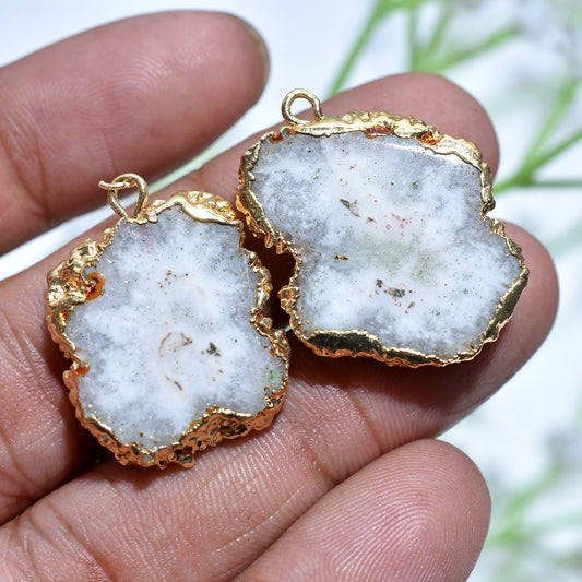 Handmade Sparkling Solar Quartz Pair – Golden Electroplated Druzy Gemstones for Crafts