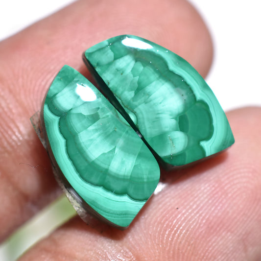Natural Malachite Gemstone Pair – Wholesale Matching Cabochons for Jewelry