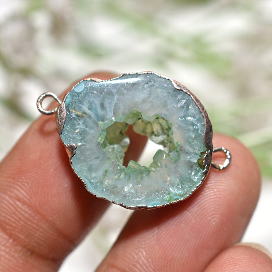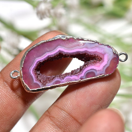 Silver Electroplated Pink Solar Quartz Connector, Wholesale Druzy Quartz Connector For Crafts
