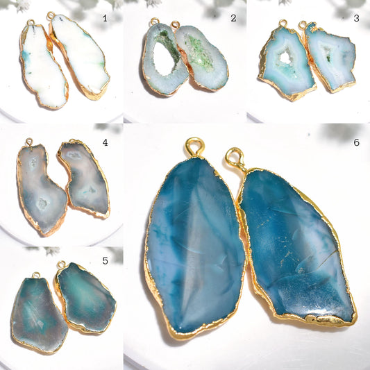 High Quality Golden Electroplated Solar Quartz Pair – Sky Blue Druzy Crystal Slice Gemstone Set