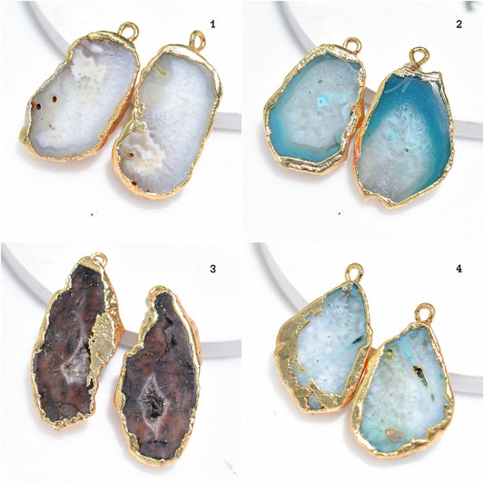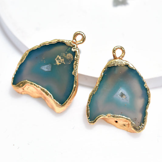 Natural Blue Geode Druzy Earring Pair – Gold Electroplated Single Bail DIY Quartz Gemstone Charm Connector