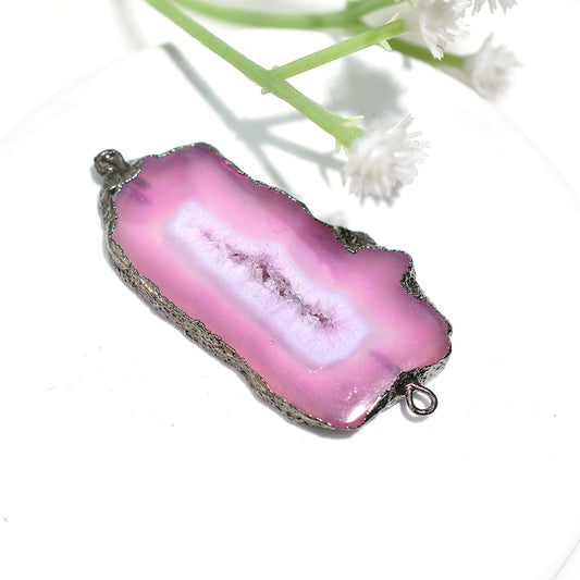 Trendy Electroplated Pink Druzy Connector – Handmade Solar Stone Jewelry Supply