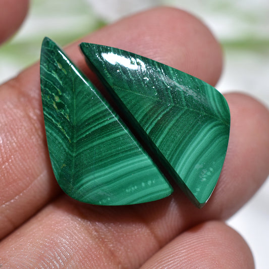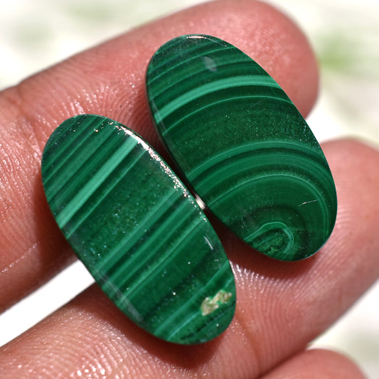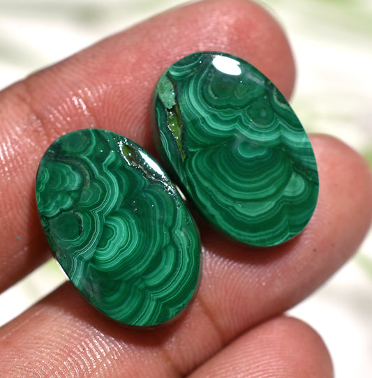 High-Quality Oval Malachite Cabochon Pair – Unique Green Gemstones (13x19x4mm,/32ct)