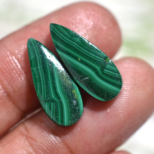 Stunning Teardrop Shape Malachite Pair with Unique Striped Patterns – Natural Gemstones (6x18x4mm,/14ct)