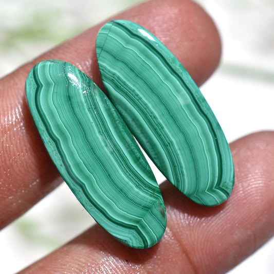 Premium Oval Malachite Gemstone Pair – Unique Green Cabochons (10x27x4mm,/43ct)