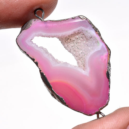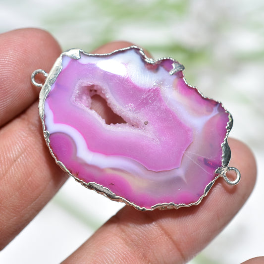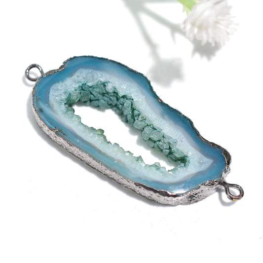 Stunning Silver Electroplated Druzy Agate Gemstone Connectors for Jewelry Design