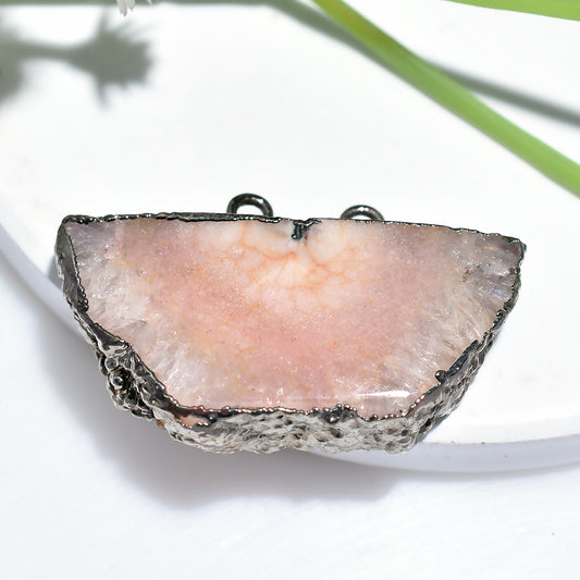 Handcrafted Pink Druzy Connector – Electroplated Solar Stone with Black Oxidized Finish