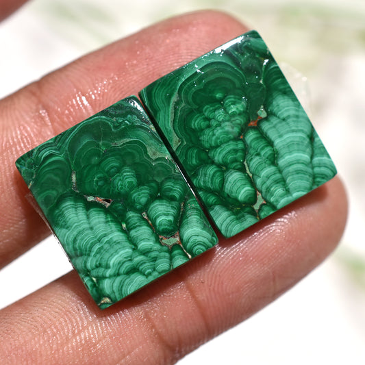 Rectangle Malachite Designer Gemstone Pair – Premium Natural Malachite Stones (15x19x3mm,/42ct)