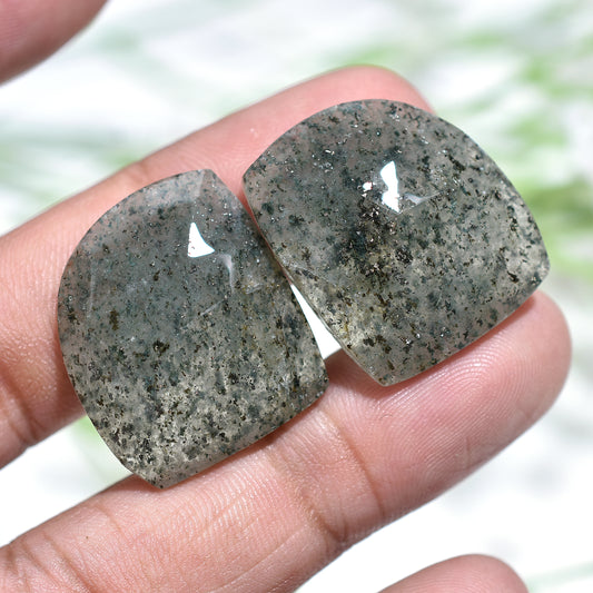 Elegant Moss Black Rutile Matched Pair- Faceted Rose Cut Gemstone for Wholesale Jewelry