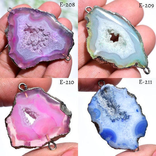 Natural Silver Electroplated Geode Druzy Double Bail Connector Set – Necklace & Bracelet Making DIY Gift