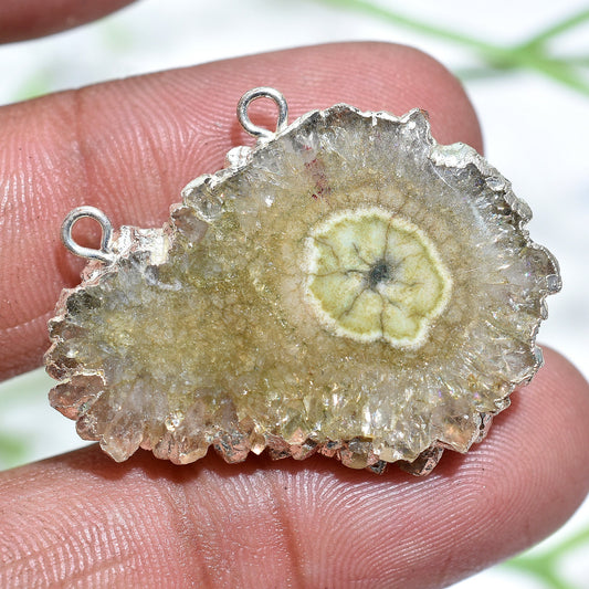 Solar Quartz Connector - Double Bail Silver Electroplated Gemstone for DIY Jewelry Necklace
