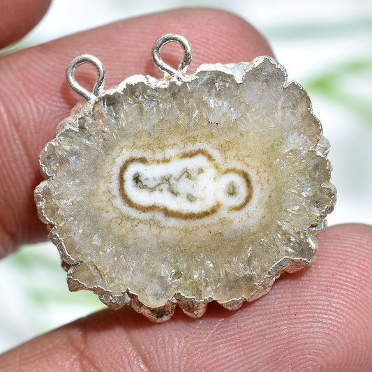 Geode Druzy Charm Connectors - Silver Electroplated Double Bail for DIY