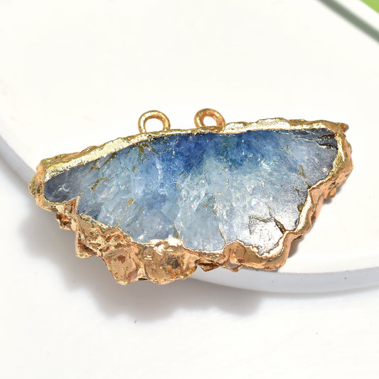 Solar Quartz Blue Agate Pendant – Double Connector for DIY Jewelry Kits | Black Electroplated Loops