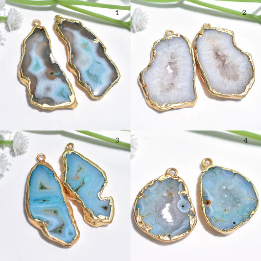 Geode Druzy Earring Pair – Gold Electroplated Slice Druzy for Statement Earrings & DIY Jewelry