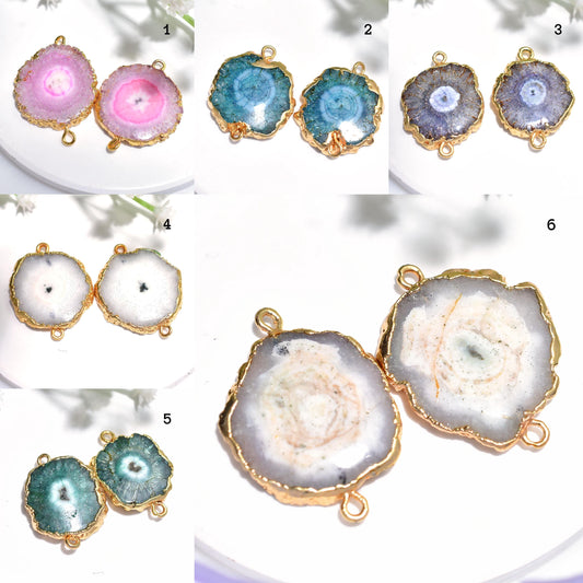 Geode Druzy Gold-Plated Earring Pair Connectors - Fancy Solar Quartz for DIY Jewelry