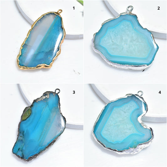 Blue Solar Quartz Pendant Geode Slice - Silver Electroplated Crystals
