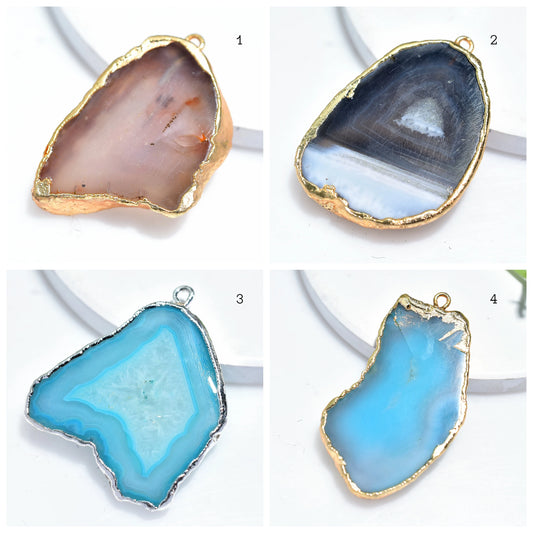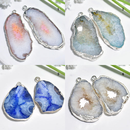 Assorted Druzy Agate Connectors - Electroplated Window Druzy in Silver, Colorful DIY Pendant