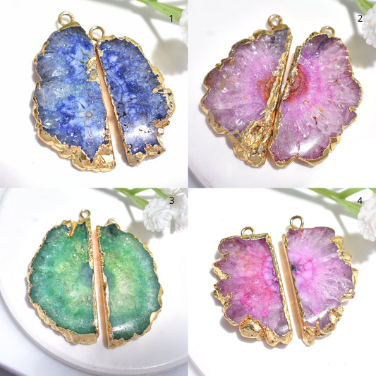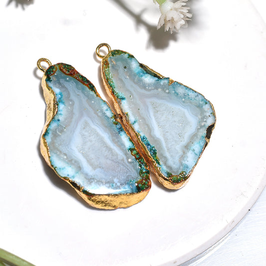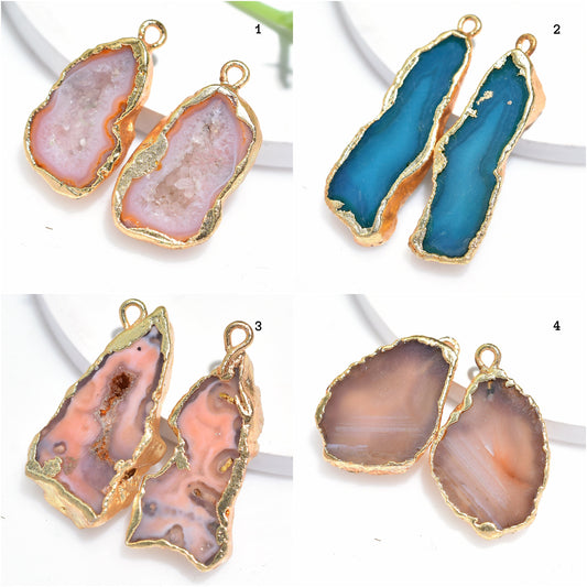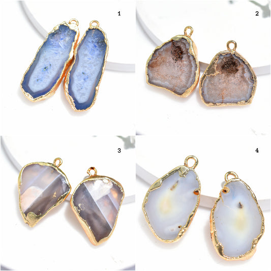 Agate Druzy Slice Charms Earring Pair – Brown-Blue Gold Electroplated Stones